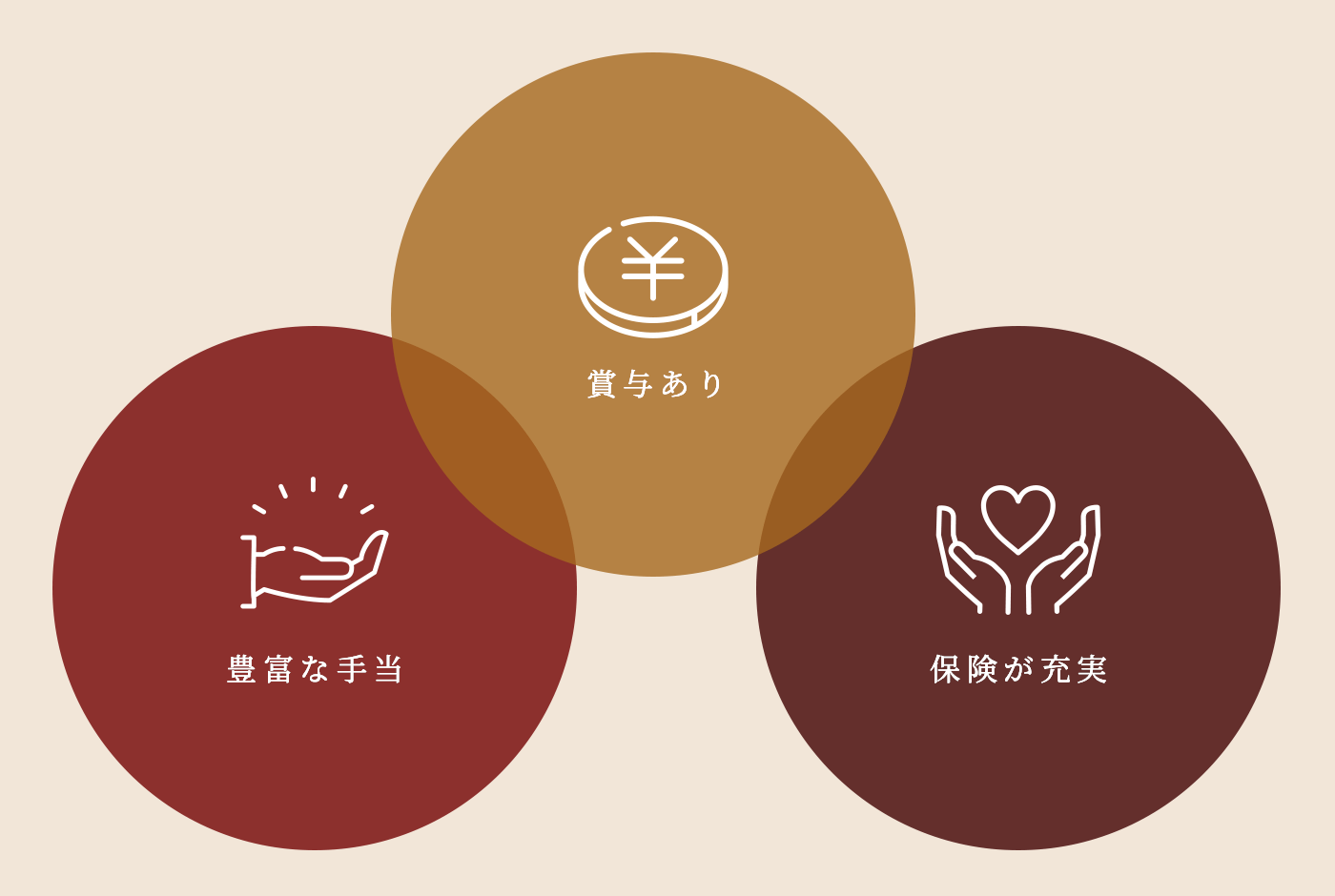 社会保険完備はもちろん、勤続5年後から、全額会社負担で生命保険へ加入することができます。退職金制度もご用意しているので、「腰を据えて長く働きたい」というあなたにぴったりの環境です。