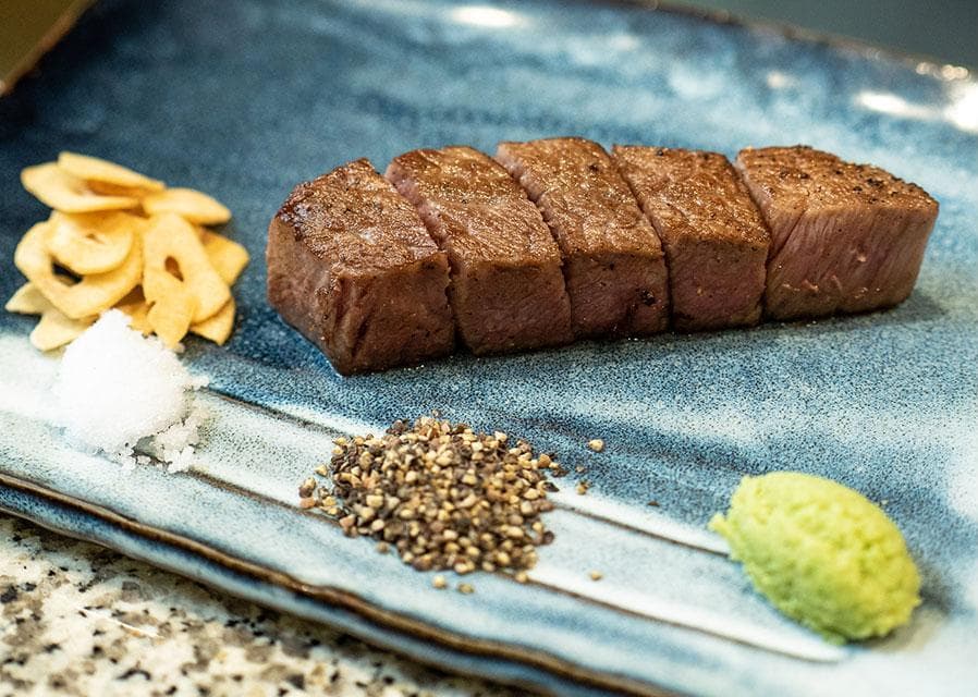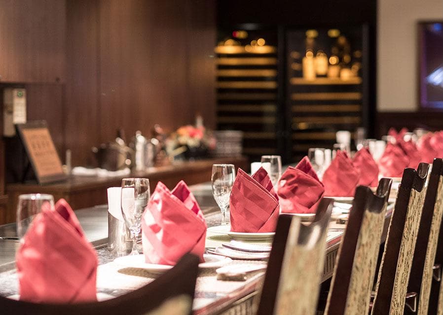 モーリヤの旗艦店である「神戸ステーキレストラン モーリヤ本店」。石と木目を基調とした風格ある店内で、モーリヤの歴史を感じながら食事を楽しむことができます。
